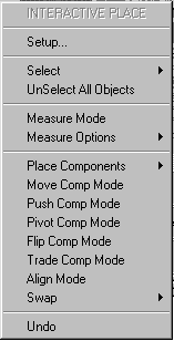 С ее помощью включают видимость позиционных обозначений и выбирают сторону платы, на которой они размещены.Затем нажимают правую кнопку мыши и переходят в меню интерактивного размещения компонентов, представленное на рис.20.