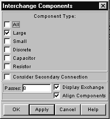 Для размещения компонента в заданные координаты используется команда интерактивного меню PlaceComponents / XY Location.Для размещения компонентов в заданном заранее порядке применяют команду PlaceComponents /Place List Mode.Выполнив предварительное размещение критичных компонентов, производят их фиксацию, нажимая пиктограмму Lock Component. Кроме того фиксацию и освобождение компонентов можно выполнить, используя команды Edit/[Un]Lock Components and Edit /[Un]Lock Components Mode.После того, как наиболее критичные компоненты размещены и зафиксированы, выполняют автоматическое азмещение больших компонентов с помощью команд Autoplace/ InitPlace Large Components, Autoplace/ Interchange Components.Меню этих команд приведены на рис. 21 и 22.