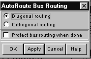 Перед трассировкой всех цепей производят предварительную трассировку ответственных цепей. Команда Autoroute/ Pre Route/ Bus Routing (рис.26) позволяет выполнить предварительную трассировку шин. В меню этой команды выбирается возможная ориентация трассировки, а также ее защита во время выполнения других проходов трассировки