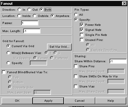 Команда Autoroute/Pre Route/ Fanout (рис.27) позволяет произвести трассировку стрингеров для планарных контиактных площадок.