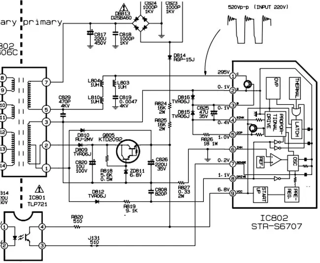 Рис. 2. Фрагмента с включением микросхемы STR S6707 в блок питания телевизора MC41B