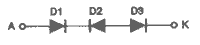 Если анод положителен по отношению к катоду, то диод D2 закрыт, что приводит к закрытию тиристора, смещенного в этом случае в прямом направлении. При другой полярности диоды D1 и D2 смещены в обратном направлении, и тиристор также закрыт.