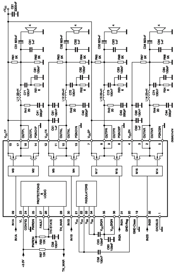 Таблица 2. Назначение выводов УМЗЧ серии STA50х
