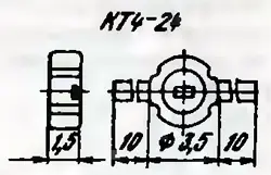 КТ4-24 | Керамические подстроенные. Выпускаются в конструктивном варианте для печатных схем с креплением пайкой за выводы. Предназначены для работы в электронных наручных часах. -60...+85 ºС | 5...25 пФ | 50 | ±10 | -(750...±750) | ![]() |