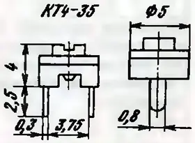КТ4-35 | Керамические подстроенные. Предназначены для работы в цепях постоянного, переменного и пульсирующего токов, в том числе в селекторах каналов телевизионных приемников. -60...+85 ºС | 0,6...3 пФ 1,0...5 пФ 2,0... 10 пФ | 50 50 50 | ±10 ±10 ±10 | -(500±1000) -(500±1000) -(500±1000) | ![]() |