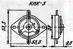 КПК-3 | Керамические подстроечные. Выпускаются в конструктивном варианте для панельного монтажа. Предназначены для работы в цепях постоянного, переменного и импульсного токов. -60...+85 ºС | 8...60 пФ 10...100 пФ 25...150 пФ 75...200 пФ 125.. 250 пФ 200...325 пФ 275...375 пФ 350...450 пФ | 500 500 500 500 500 500 500 500 | ±10 ±10 ±10 ±10 ±10 ±10 ±10 ±10 | -(200...800) -(200...800) -(200...800) -(200...800) -(200...800) -(200...800) -(200...800) -(200...800) | ![]() |
