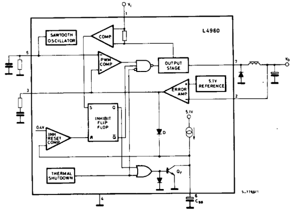 Блок-диаграмма L4960 для глубокого понимания принципа работы.