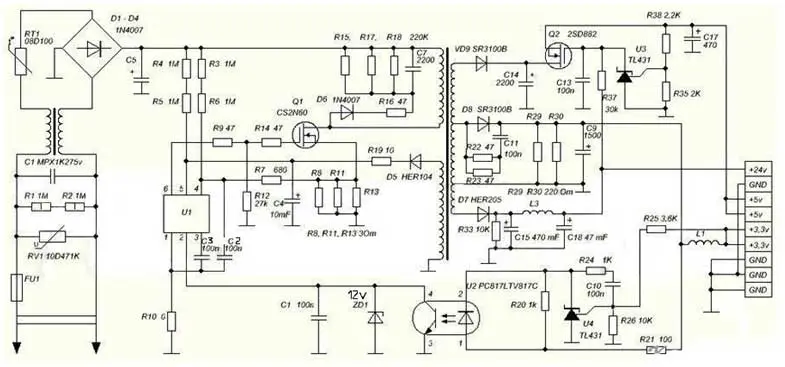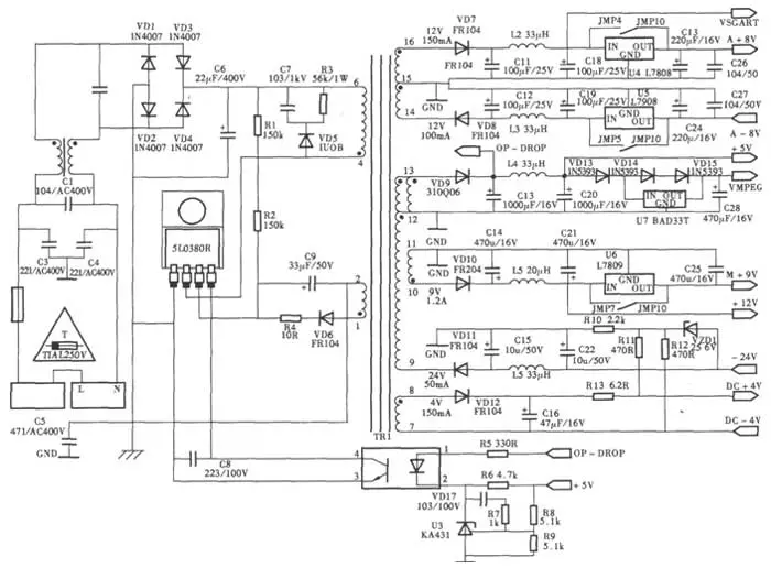 На базе микросхемы 5L0380R можно собрать ИИП с рентабельной конструкцией, реализующей схему обратного, либо прямого преобразователя.