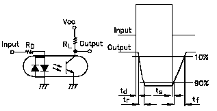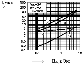 Для оптопары КВ814 на рисунке 1 показана схема, используемая для определения временных параметров выходного импульса, а зависимость временных параметров импульса от сопротивления нагрузки ( RL ) показана на рисунке 2.