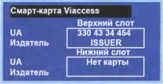 В пункте меню VIACCESS аппарат показывает данные, которые записаны в установленных смарт-картах (рис. 10).
