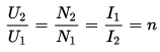 Где n – коэффициент трансформации, U1 и U2 – напряжения на первичной и вторичной обмотках, а I1, I2 – силы тока, N1 и N2 – количество витков.