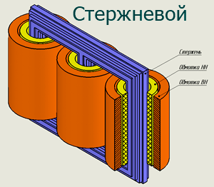 2.Стержневые (магнитопровод преимущественно расположен только внутри обмоток);