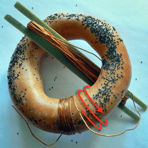 1.Челноки (небольшие катушки, способные протиснуться во внутренний диаметр тора вместе с намотанным на них проводом);
