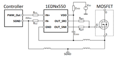 Типовая схема включения драйверов 1EDN*550 в схеме с большой паразитной индуктивностью