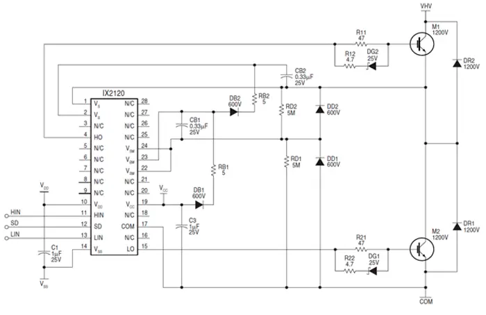 Схема подключения IX2120B для управления IGBT транзисторами