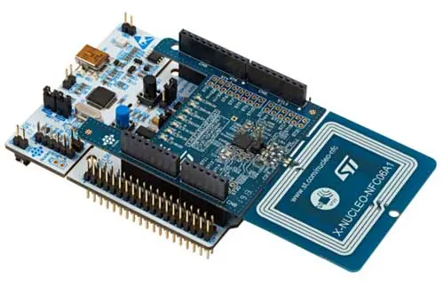 Плата X-NUCLEO-NFC06A1 позволяет оценить работу микросхемы RFID-ридера ST25R3916 в связке с микроконтроллером STM32. Плата может быть установлена в качестве мезонинной на любую плату NUCLEO-STM32, однако готовые приложения в рамках пакета X-CUBE-NFC6 доступны только для плат NUCLEO-L053R8 или NUCLEO-L476RG (приобретаются отдельно). Предлагаемый в исходных кодах пример позволяет осуществлять форматирование, загружать данные и вычитывать информацию из NFC-tag микросхем с помощью простого набора команд, отправляемых через UART.