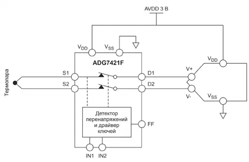 Рис. 1. Типовая схема применения микросхемы ADG7421F