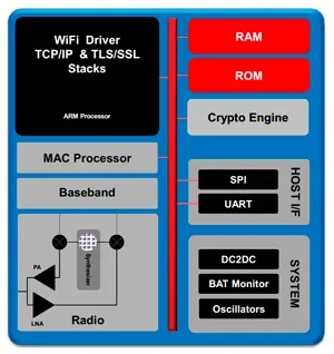 Новый сетевой процессор CC3100 от Texas Instruments предназначен для подключения к сети интернет различных встраиваемых устройств, имеющих на борту слабый микроконтроллер. Микросхема CC3100R11MRGC выполняет все задачи, связанные с подключением к WiFi-сети и содержит полный TCP/IP-стек (Wi-Fi Internet-On-a-Chip™). Устройство с CC3100 может выступать как в качестве клиента, подключаясь к существующей инфраструктуре WiFi, так и виде точки доступа, т.е "раздавать сеть".