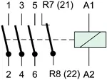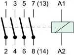 - к контакторам с номинальными токами от 25 А можно дополнительно подключить 1 НО и 1 НЗ контакты;