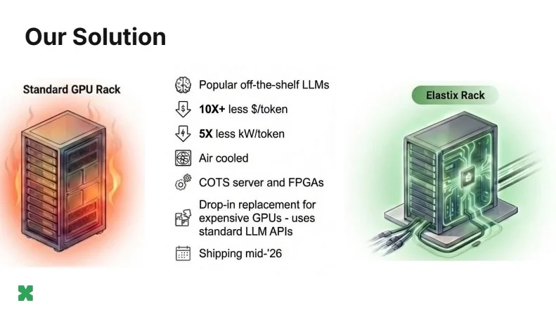 Сиэтлский стартап ElastixAI вышел из стелс-режима, объявив о создании платформы инференса на базе FPGA. По заявлению основателей, она снижает совокупную стоимость владения (TCO) при развёртывании больших языковых моделей (LLM) до 50 раз по сравнению с решениями на GPU Nvidia, потребляя при этом на 80% меньше электроэнергии.