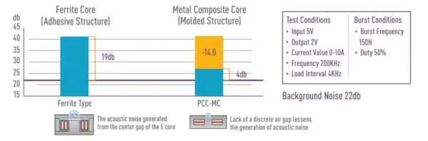 Отдельно стоит отметить отличные показатели магнитной эмиссии и защиты от внешних магнитных полей данных дросселей, которые достигаются за счет магнитного экранирования корпуса и распределенного воздушного зазора внутри сердечника. Для печатных плат (аналоговых и многослойных), особо требовательных к минимально-возможному уровню электромагнитных помех и шумов, это – критичный параметр. Отсутствие ярко-выраженного воздушного зазора также способствует существенному уменьшению акустических шумов, генерируемых дросселем.