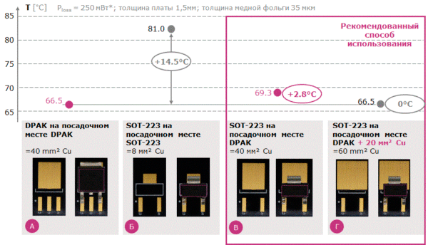 Сравнение нагрева транзисторов в корпусах DPAK и SOT-223