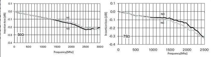 На складе Компэл представлены высокочастотные реле серии HF3, выводы которого имеют минимальное сопротивление сигналу и малое влияние на его затухание на высоких частотах (вплоть до 3 ГГц). Потери на переменном токе высокой частоты не превышают 0.3 дБ и приведены на графике ниже: