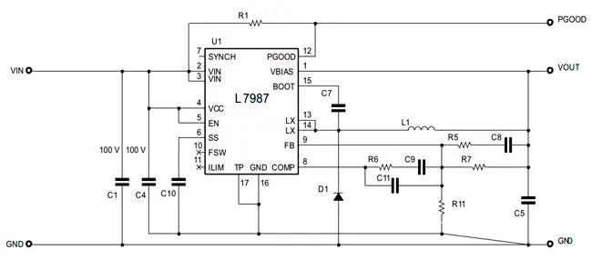 Диапазон выходного напряжения может быть в пределах от 0.8 до 61 В, выходной ток до 3 А (L7987) и до 2 А (L7987L), а широкий диапазон входных напряжений от 4.5 В до 61 В позволяет использовать данную микросхему в индустриальных системах, автомобильной промышленности и системах безопасности.