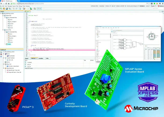 Microchip анонсирует среду MPLAB® Xpress Cloud-based Integrated Development Environment (IDE). Эта онлайн платформа разработки является простейшим путем освоения семейства микроконтроллеров (МК) PIC®. Для начала работы не требуется ничего загружать, входить в систему и настраивать ее. Программист может работать со средой на подключенных к интернету ПК, лаптопе или планшете, ему доступны конфигурирование периферии, автоматическая генерация кодов, интегрированный компилятор MPLAB XC, аппаратный программатор/отладчик и 10 Гбайт хранилища защищенных данных в аккаунте myMicrochip. Пользователи могут легко переносить свои проекты в полную версию загружаемой среды MPLAB X IDE.