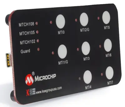 Для упрощения знакомства с контроллерами MTCH102/5/8 существует отладочная плата DM160229_MTCH108 Evaluation Board, с подробной информацией о которой можно ознакомиться на сайте Microchip.