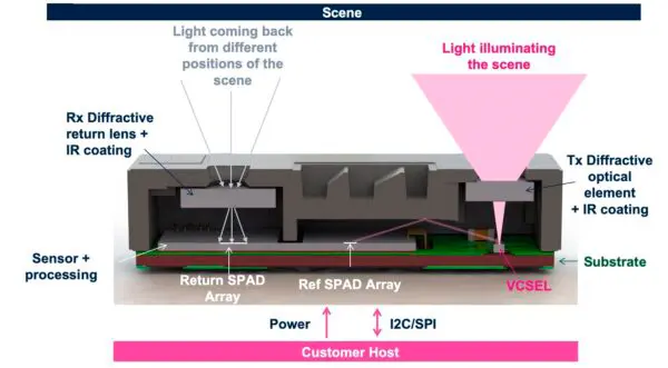 Рис. 1. Внутреннее устройство TоF-датчика VL53L5