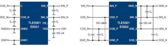 Схема включения TLE5501 E0001 и E0002