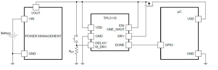 Микросхема TPL5110 является таймером с интегрированным драйвером MOSFET, предназначенным для управления внешним ключом и отключения токовой нагрузки в устройствах с батарейным питанием. При малом собственном потреблении, порядка 35 нА, с помощью встроенного в TPL5110 драйвера возможно отключать нагрузку через заданные временные интервалы и существенно уменьшить ток потребления системы в режиме сна. Такое решение будет востребовано в устройствах аккумулирования энергии и беспроводных датчиках, так как позволяет ослабить требования по ёмкости и габаритам используемых батарей.