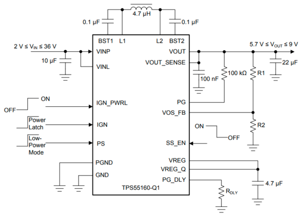 - 3.5…36 В (для TPS55160 / TPS55162);