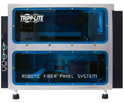 Роботизированные волоконно-оптические панели Tripp Lite с мини-шасси имеют 204 порта LC для подключения волоконно-оптического кабеля и используют роботизированную фиксацию и дистанционное управление для перенастройки оптоволоконных соединений уровня 1 между коммутаторами и серверами. Этот процесс занимает всего 15 секунд. Два роботизированных манипулятора точно перемещают кабели на место, что исключает человеческие ошибки и повреждения, которые могут возникать со временем при подключении вручную.