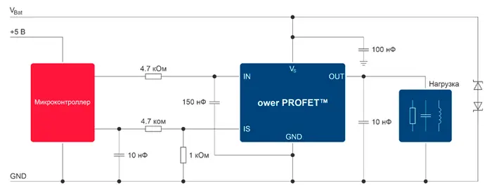 В отличие от реле и предохранителей эти ключи устойчивы к пыли, ударам и вибрации и позволяют снизить потери мощности, повысить износостойкость и минимизировать размер готового модуля, а кроме того, упрощают его обслуживание за счет возможности программного сброса вместо замены предохранителя в автомастерской. Использование ключей Power PROFET оптимизирует затраты за счет более точного прогнозирования размеров системы и уменьшения количества компонентов (меньше проводов и разъемов, более компактный блок реле).