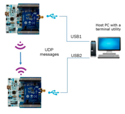 Самый простой из примеров представляет собой исходный код проекта для двунаправленной передачи данных между двумя точками. В примере задействован механизм подтверждения доставки пакета. Разработчик может задать все параметры радиолинка - рабочую частоту, выходную мощность, тип модуляции, тип контрольной суммы в пакете и т.д. В примере можно задействовать режимы малого потребления. Для создания сети из десятков и сотен узлов предлагается использовать библиотеку 6LoWPAN на базе операционной системы Contiki.