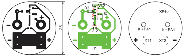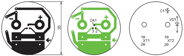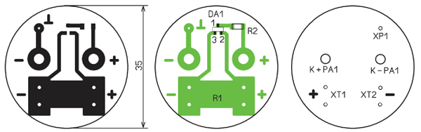 Рис. 12. Чертёж печатной платы для размещения на выводах микроамперметра М260М