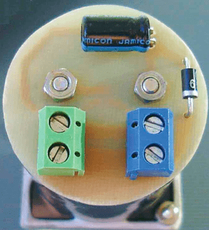 Чертёж печатной платы для размещения на выводах микроамперметра М260М показан на рис. 12. Для этой топологии максимальный переменный ток при отклонении стрелки на максимальное деление шкалы - 10 А. Если частота измеряемого тока не более 400 Гц, диод BA159 можно заменить более доступным 1N4007. Внешний вид установленного на микроамперметр устройства показан на рис. 13.