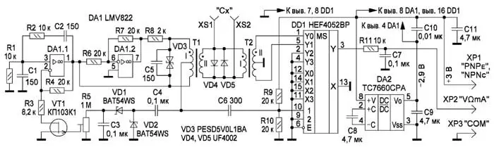 Рис. 1. Схема измерителя ЭПС в виде приставки к мультиметрам серий М-83х и DT-83x