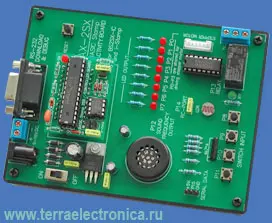 - материнская плата содержит 8-LED дисплей, драйвер реле на 12В, униполярный шаговый двигатель, звукоизлучатель 8Вт, датчик освещенности LDR и четыре пользовательских кнопки;