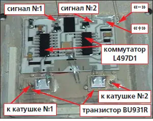 Как видно из рис. 4, схема состоит из двух коммутаторов типа L497D1 и двух мощных транзисторов типа BU931.