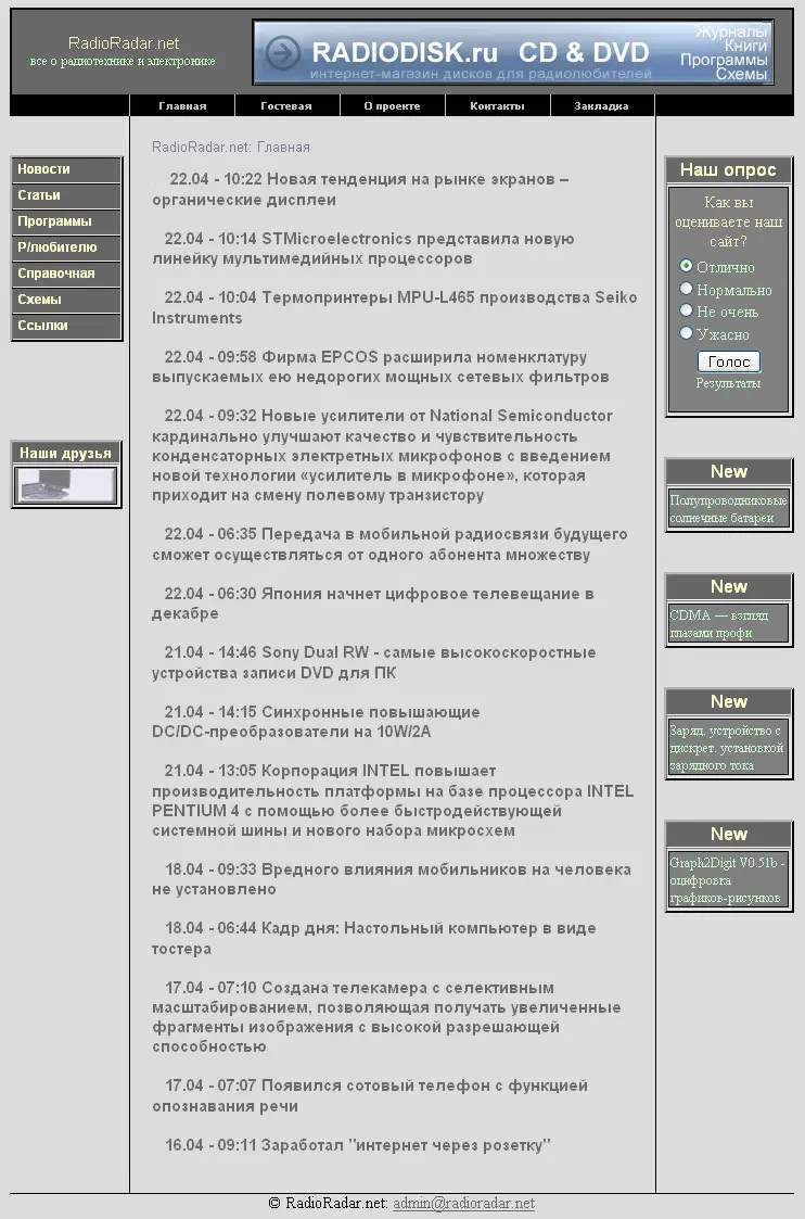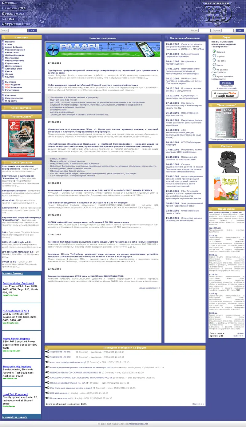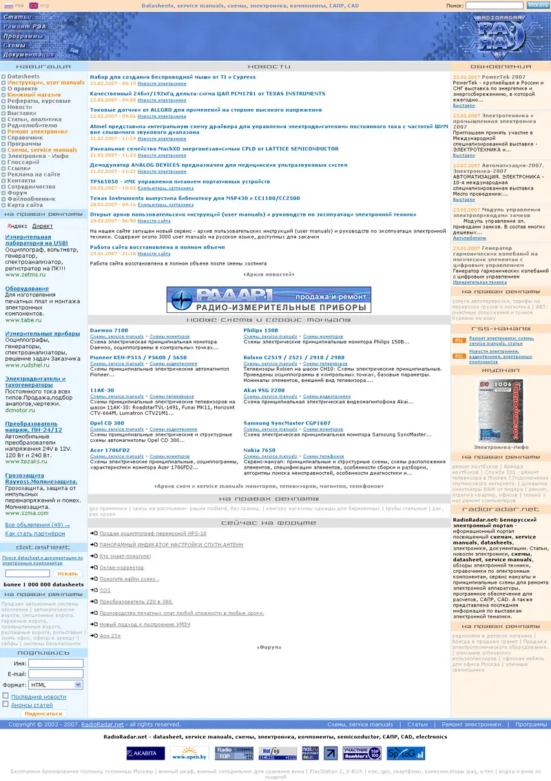 Для инженеров и всех интересующихся научной стороной радиотехники и электроники будет интересна подборка теоретических статей и обзоров изобретений. Если у вас сломался телевизор, видеомагнитофон, музыкальный центр или другая аппаратура, и вы обладаете достаточными знаниями, чтобы заняться ремонтом, то вам помогут разделы "Ремонт электроники", "Архив схем", "Справочная", где можно найти подробное описание схем различной аппаратуры, сами схемы, алгоритмы поиска неисправностей, типичные неисправности, справочные материалы по элементной базе.