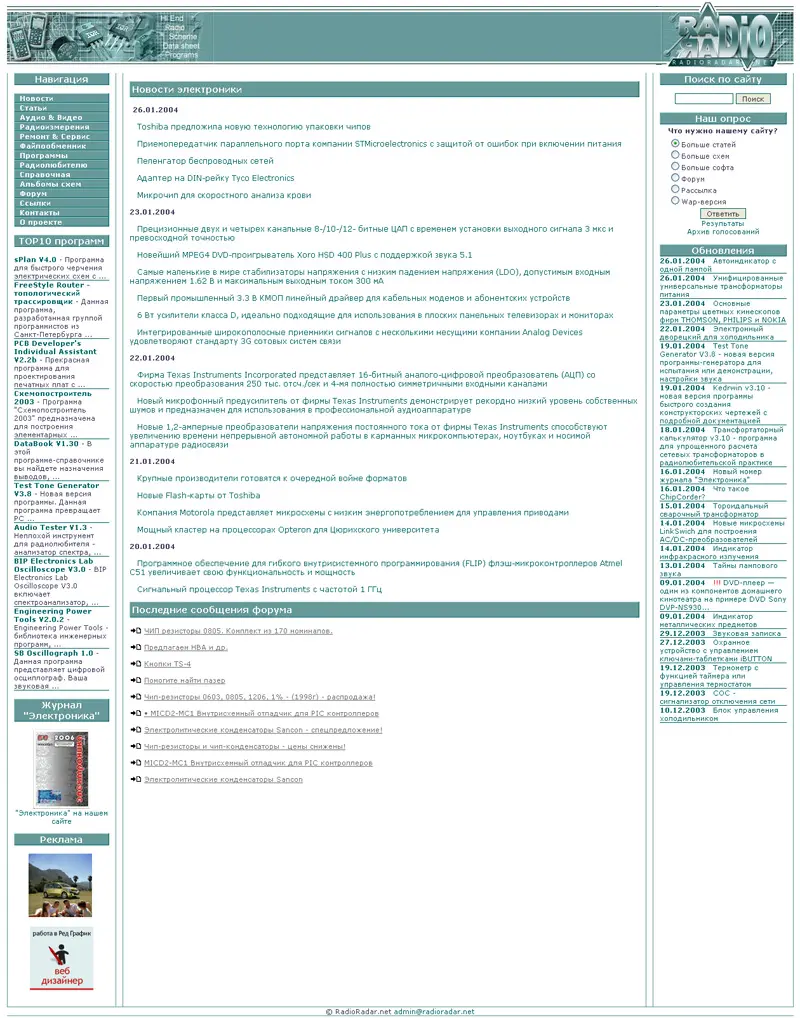 В разделе "Программы" представлена постоянно обновляющаяся подборка программ различной тематики: для расчета параметров РЭС, эмуляторы измерительной аппаратуры, системы автоматизированного проектирования, инженерные утилиты.