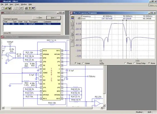 Программа предназначена для проектирования фильтров с использованием коммутируемых конденсаторов и активных RC-фильтров Linear Technologies. Filter CAD помогает пользователю, не имеющему глубоких специфических знаний разработать хороший фильтр с минимальными затратами. Также есть возможность экспериментировать при проектировании, для получения лучших результатов, варьируя конфигурацией фильтра или параметрами его элементов. FilterCad позволяет проектировать ФНЧ, ФВЧ, полосовые и режекторные фильтры с разнообразных типов, включая фильтры Баттерворта, Чебышева, Бесселя, эллиптические, а также другие, определенные пользователем.