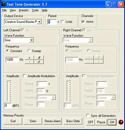 Новая версия программы. Данная программа превращает PC в полнофункциональный генератор для испытания или демонстрации, настройки звука, обучения, для создания звуковых эффектов и других целей. Она может воспроизводить постоянные или изменяющиеся испытательные сигналы в реальном времени. Вы можете также сохранять сигнал как WAV-файл, например записав испытательный сигнал на CD.