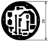 Все элементы усилителя смонтированы на двухсторонней печатной плате из фольгированного стеклотекстолита толщиной 1 мм, чертёж которой показан на рис. 2, а схема размещения элементов - на рис. 3. Вторая сторона платы оставлена металлизированной и с помощью отрезков лужёного провода через отверстия соединена с металлизированными площадками первой стороны. В усилителе применены постоянные резисторы и конденсаторы для поверхностного монтажа типоразмера 0805, подстроечные резисторы - PVZ3A. Трансформатор T1 намотан вдвое сложенным проводом ПЭВ-2 0,25 на ферритовом магнитопроводе диаметром 4...5 мм и содержит три витка. Выводы обмоток выведе-ны в противоположные стороны. Катушка L1 намотана проводом ПЭВ-2 0,5 на оправке диаметром 4 мм и содержит 2,5 витка. Дроссель L2 намотан проводом ПЭВ-2 0,18 на оправке диаметром 2 мм и содержит 20...25 витков, витки скреплены клеем "Момент".