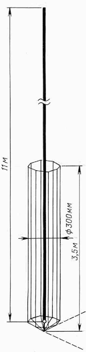Антенна представляет собой обычный на изоляторе. Высота излучателя критична, а диаметр нет (можно применить от тонкой проволоки на изоляторе до трубы).
