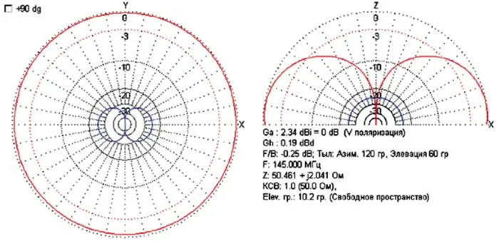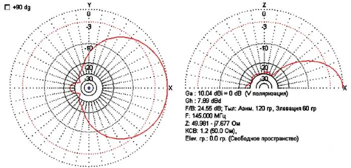 Вертикальная J-антенна из-за неполной симметрии имеет небольшое излучение с горизонтальной поляризацией (рис. 2).