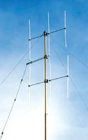 Такая антенна описана SM0VPO на его сайте в статье "6 dB collinear VHF antenna by Harry Lythall - SM0VPO". Её усиление (около 2,4 дБд) получено за счёт сужения диаграммы направленности в вертикальной плоскости. В горизонтальной плоскости диаграмма излучения круговая. Антенна конструктивно очень проста и может изготавливаться из одного отрезка алюминиевого прутка или трубки. Для сохранения симметрии антенны кабель питания желательно подключать через симметрирующий трансформатор. SM0VPO использует симметрирующий трансформатор в виде U-колена. Можно ограничиться и несколькими ферритовыми кольцами, надетыми на кабель вблизи точки питания антенны.